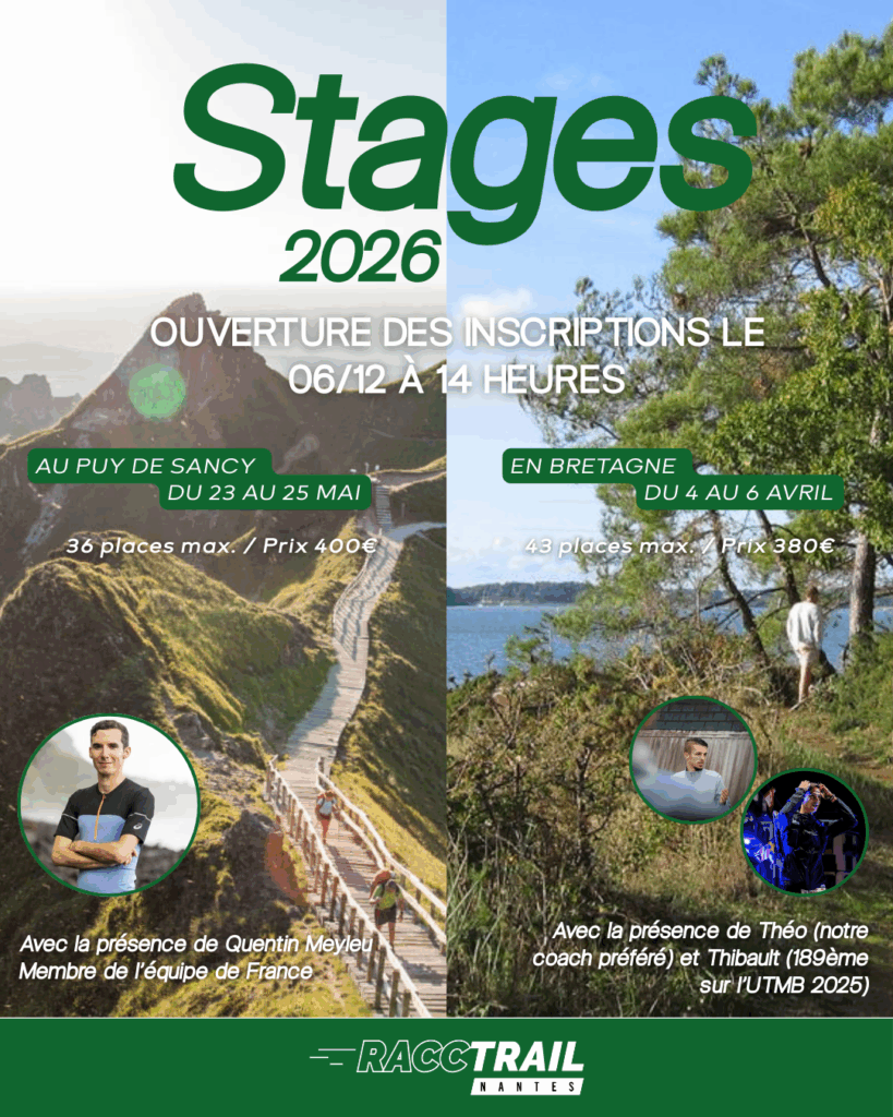 Les stages trail 2026 organisés par le RACC Trail ouvrent le samedi 06/12 à 14h.